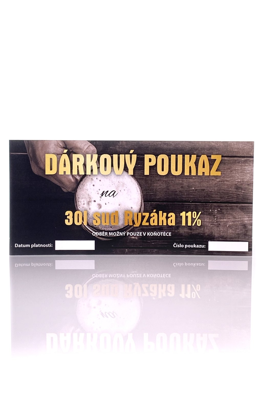 Poukaz platí na 30 l sud piva Ryzák 11% filtrovaný/ nefiltrovaný.
